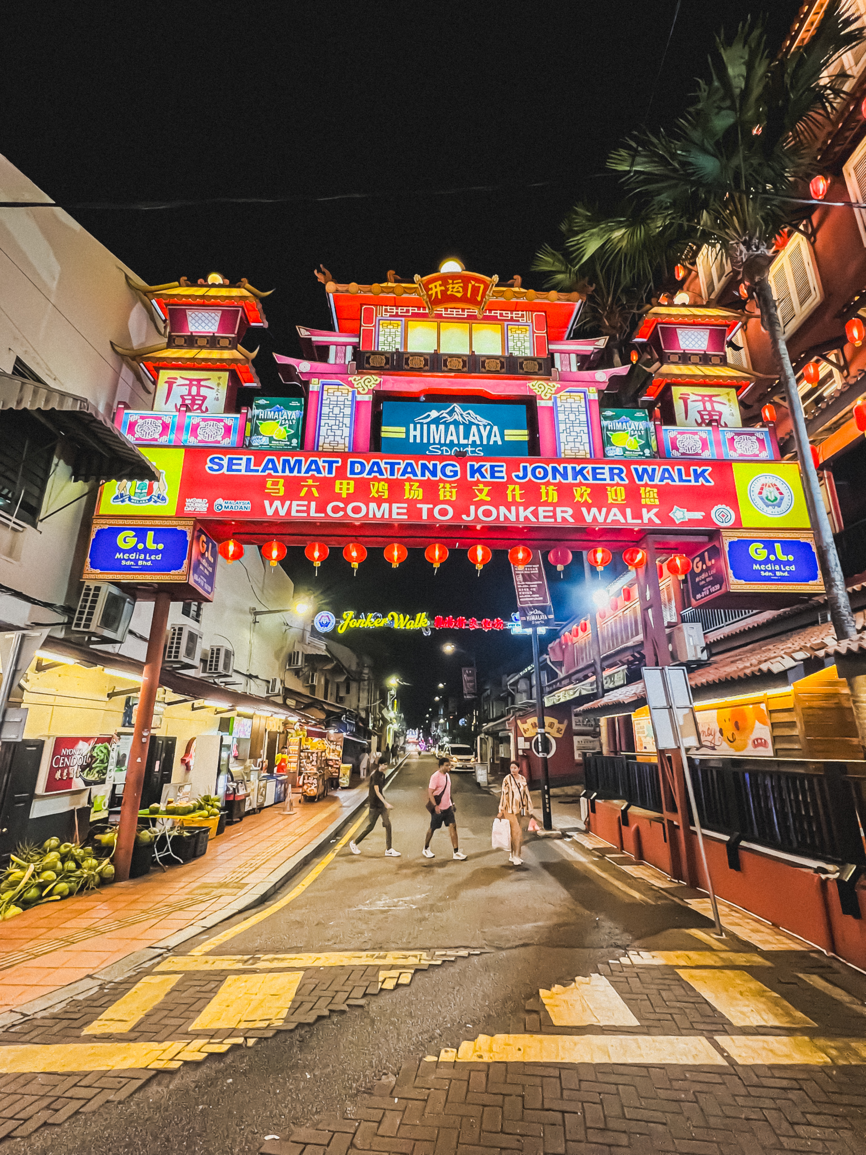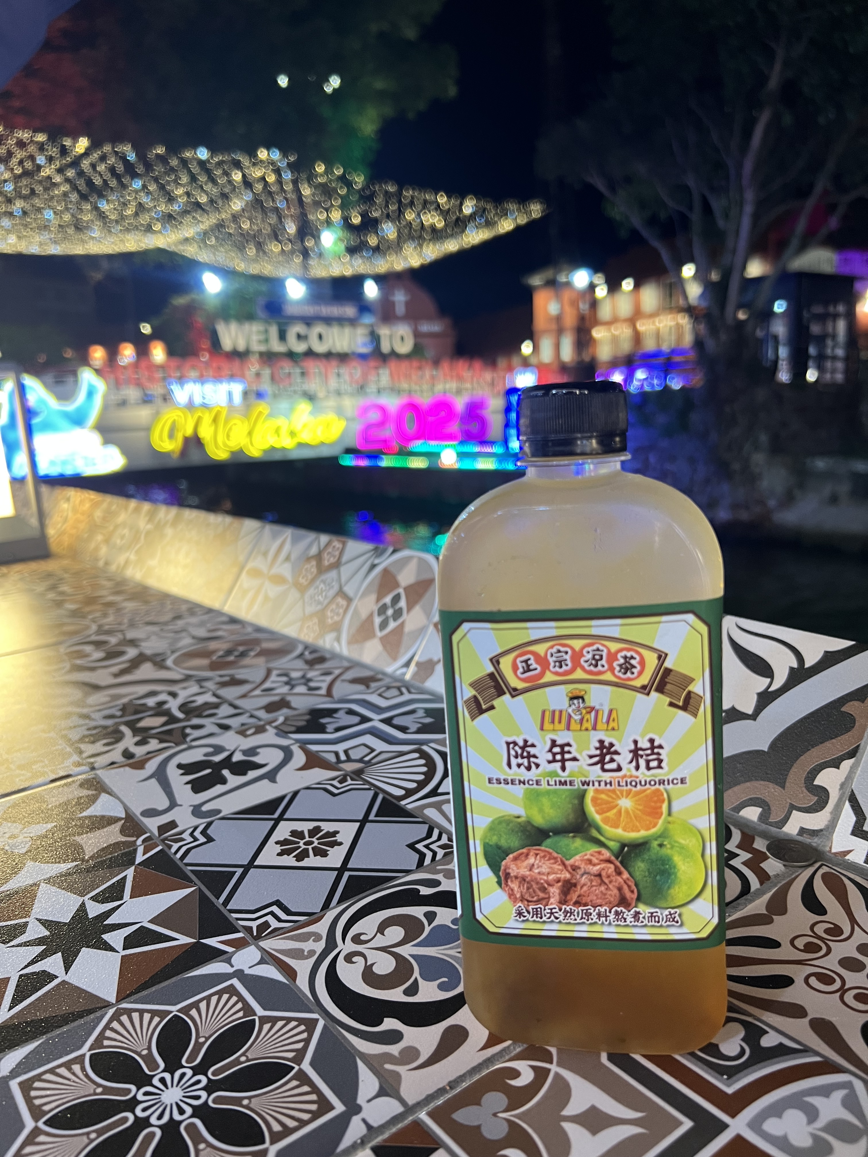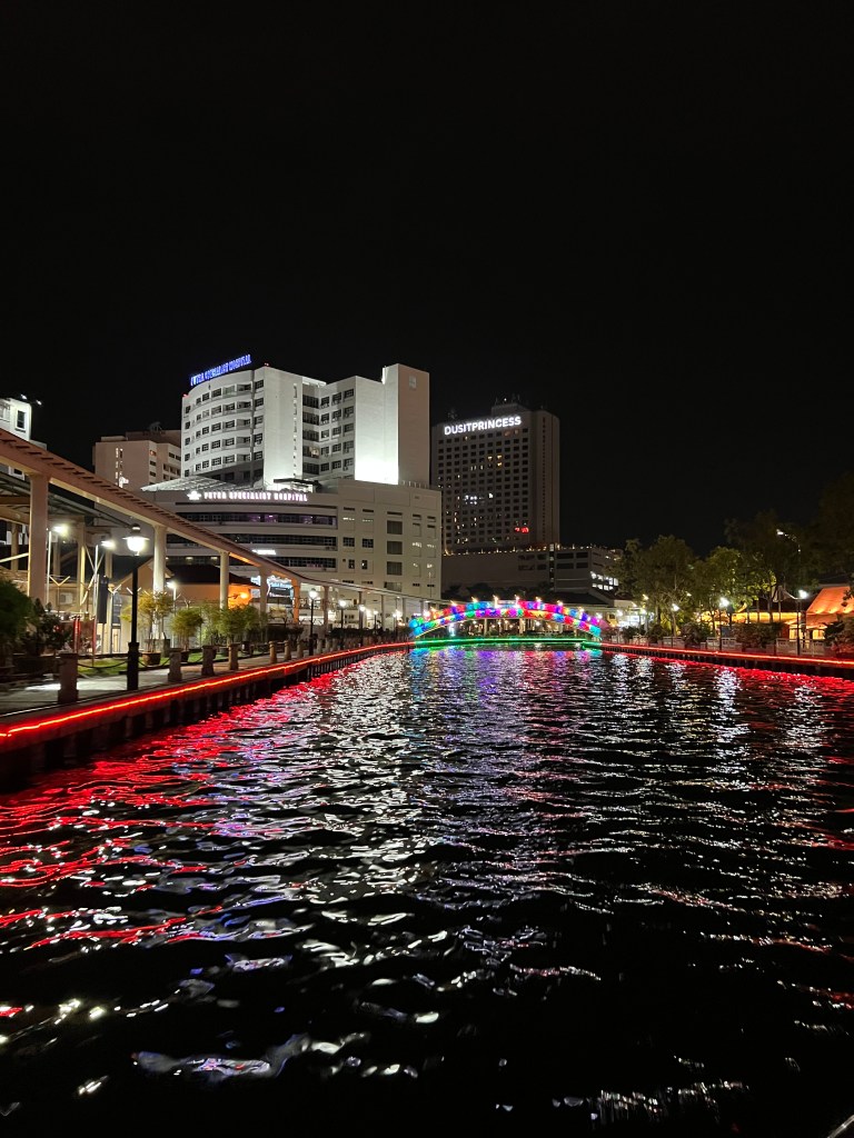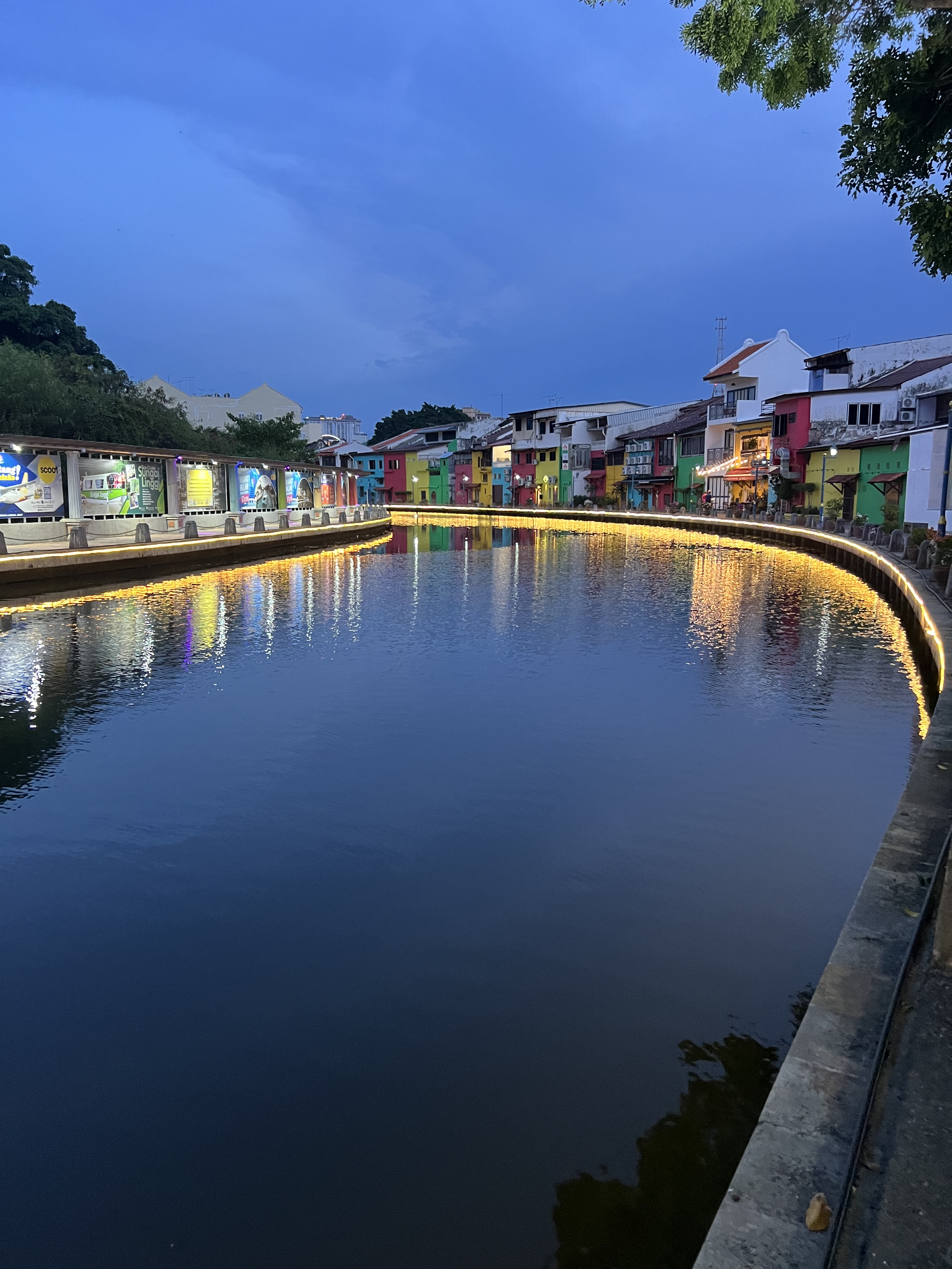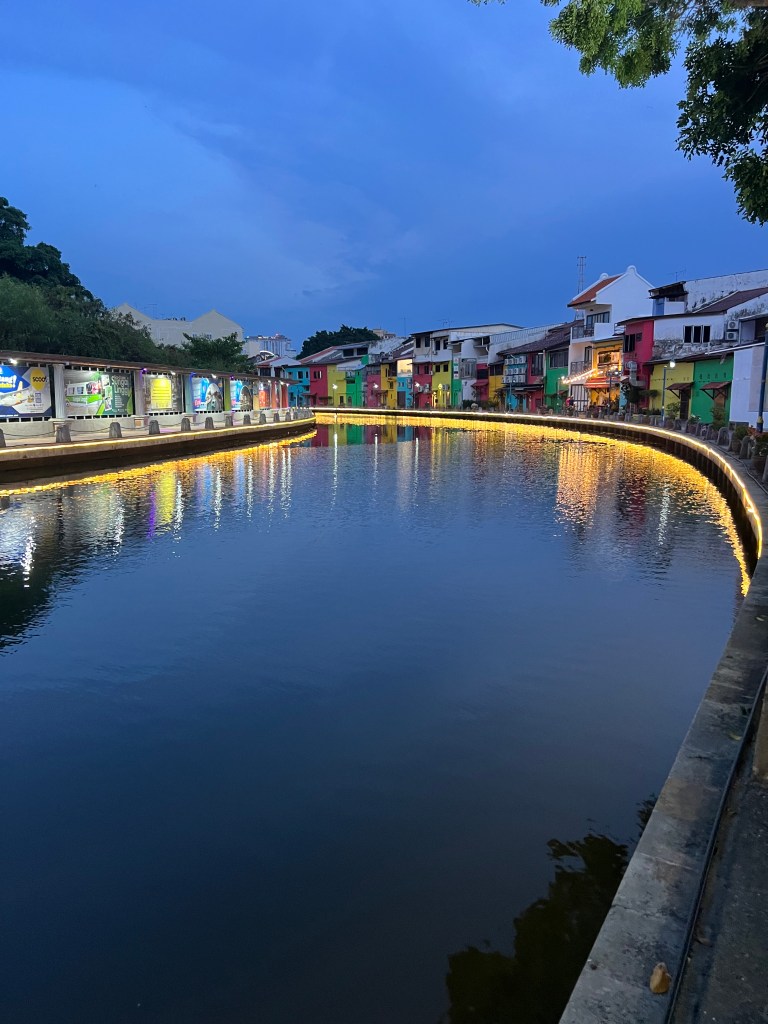 Torno verso il centro. Il sole cala. Il fiume si accende di luci. Passo per Jonker Walk, (ufficialmente conosciuta come Jalan Hang Jebat) è la strada più famosa e vivace del centro storico di Malacca, in Malesia. È il cuore del quartiere cinese della città. Purtroppo essendo lunedì, non posso assistere allo spettacolo del vivace mercato notturno che si tiene solo nei fine settimana. Cose che capitano quando non si pianifica nulla. Quindi entro in un supermercato cinese li accanto e prendo una bevanda all’essenza di lime e liquirizia. Anche questa non mi convince. Ma mi siedo fuori, sul terrazzino, guardo il fiume illuminarsi. È bellissimo.