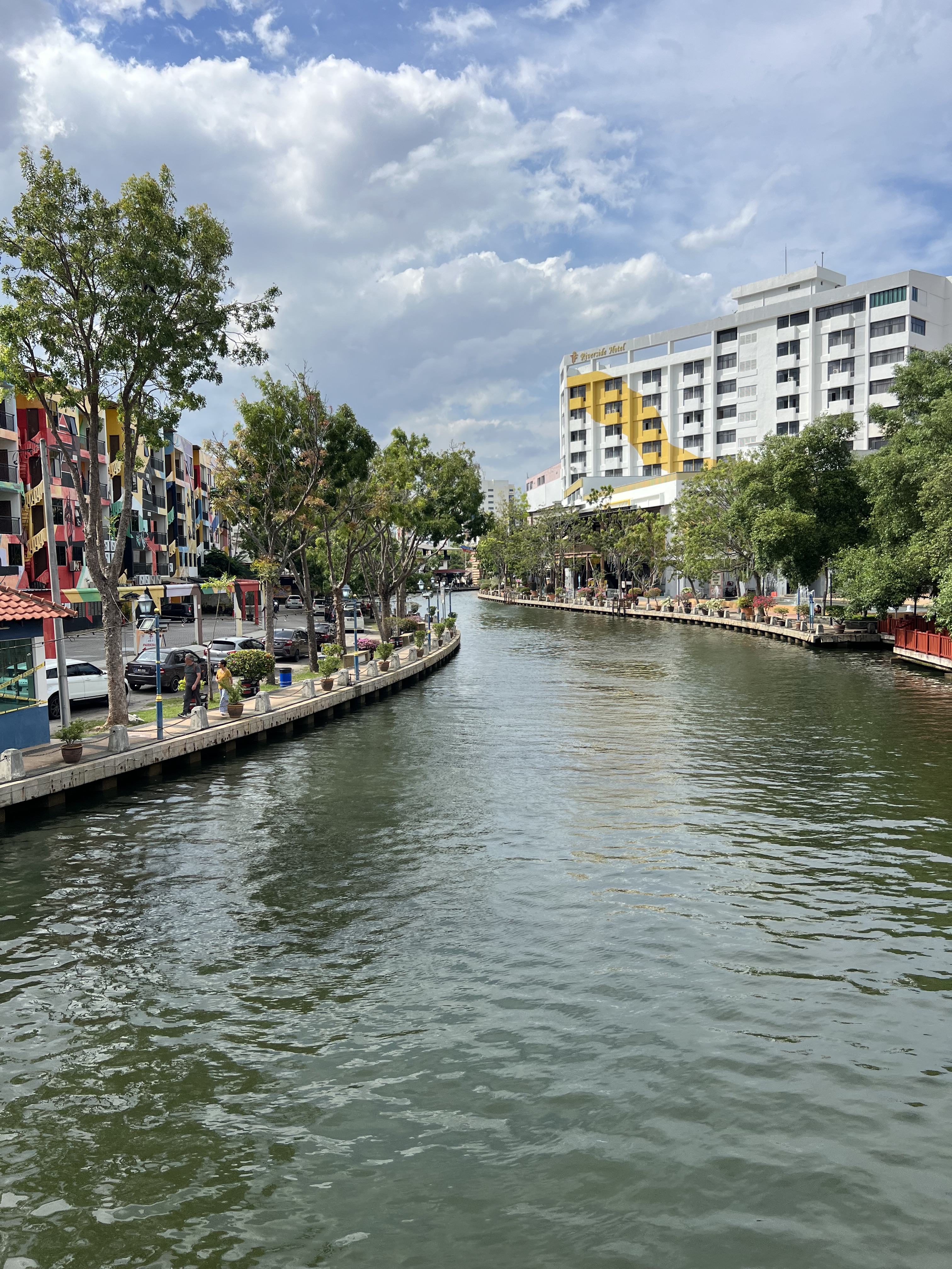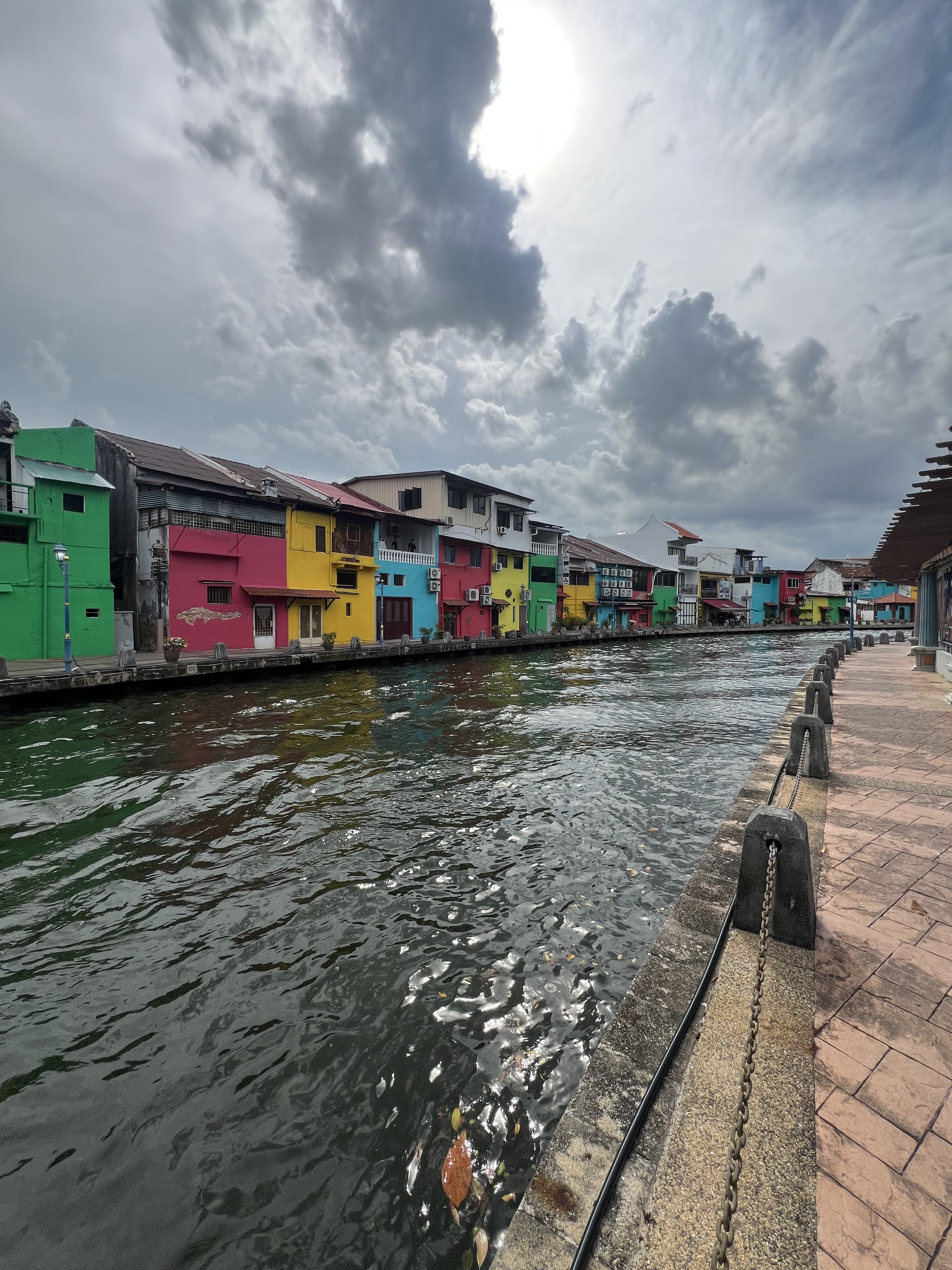 Sul lungofiume, l’atmosfera cambia ancora: le case colorate sull’altra sponda sembrano uscite da una cartolina. Molte sono antiche shophouses: un tempo dimore di mercanti cinesi, malesi e indiani, oggi trasformate in bar, gallerie e ristoranti. Cammino senza meta, cullato dal riflesso del sole sul fiume.