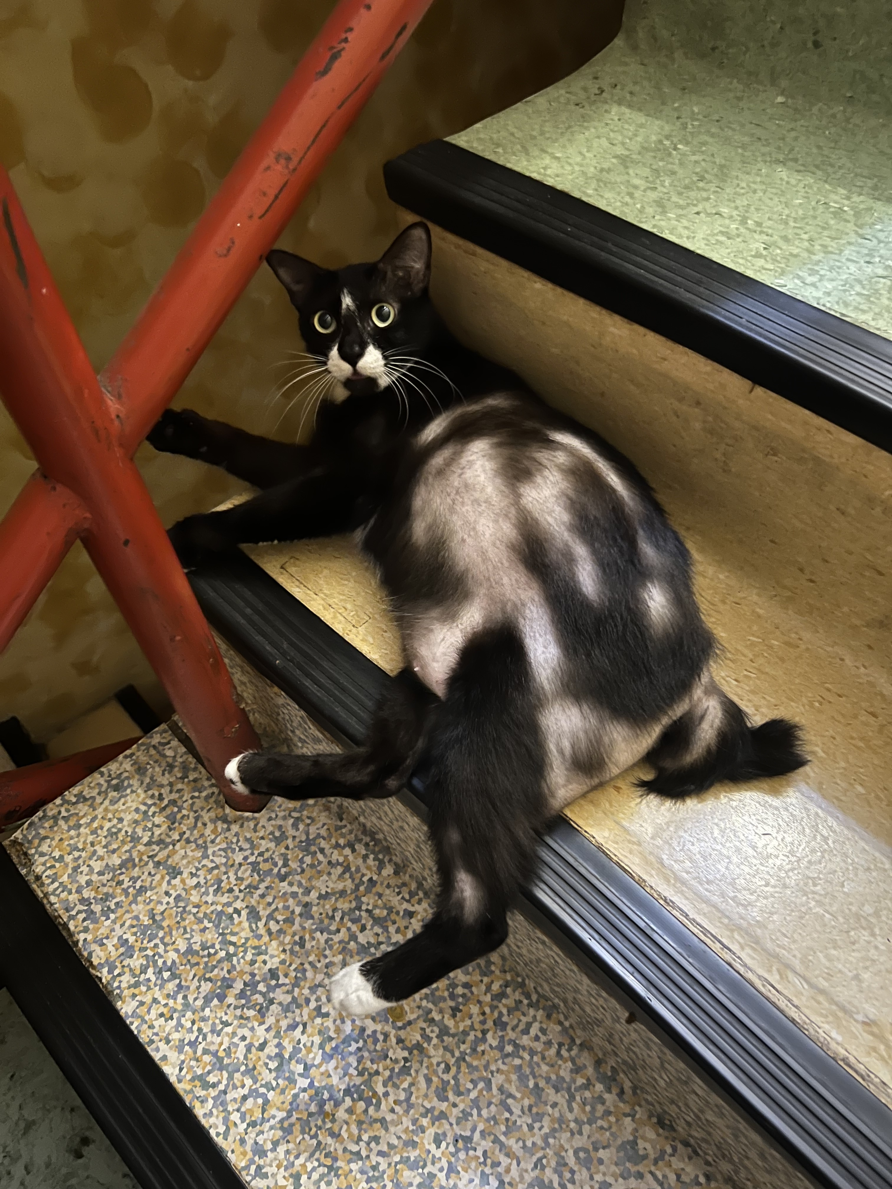 Mi apre la porta un ragazzo malese sorridente, insieme ai suoi due gatti curiosi.