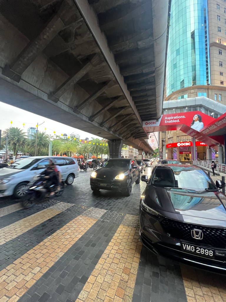 Dopo circa 40 minuti di metro, esco dalla stazione e mi ritrovo immerso in un’altra dimensione. Un salto netto dalla tranquillità di Malacca al caos organizzato di Kuala Lumpur. È tutto un fermento: clacson, gente ovunque, insegne luminose, incroci impossibili. Mi ricorda Bangkok, dove ero già stato anni fa: quel mix di disordine e meraviglia che solo le grandi metropoli asiatiche sanno regalare.