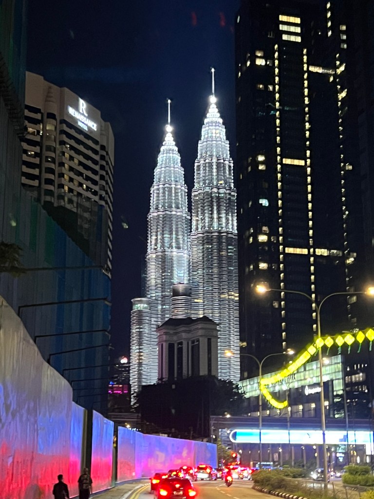 Decido di andare a piedi. Cammino lungo uno stradone trafficato per una ventina di minuti, finché inizio a vedere una folla crescente, soprattutto all’altezza di un incrocio. Mi avvicino. Sento il cuore battere più forte. Giro lo sguardo a destra e… eccole. Le Petronas. Imponenti. Illuminatissime. Incredibili.