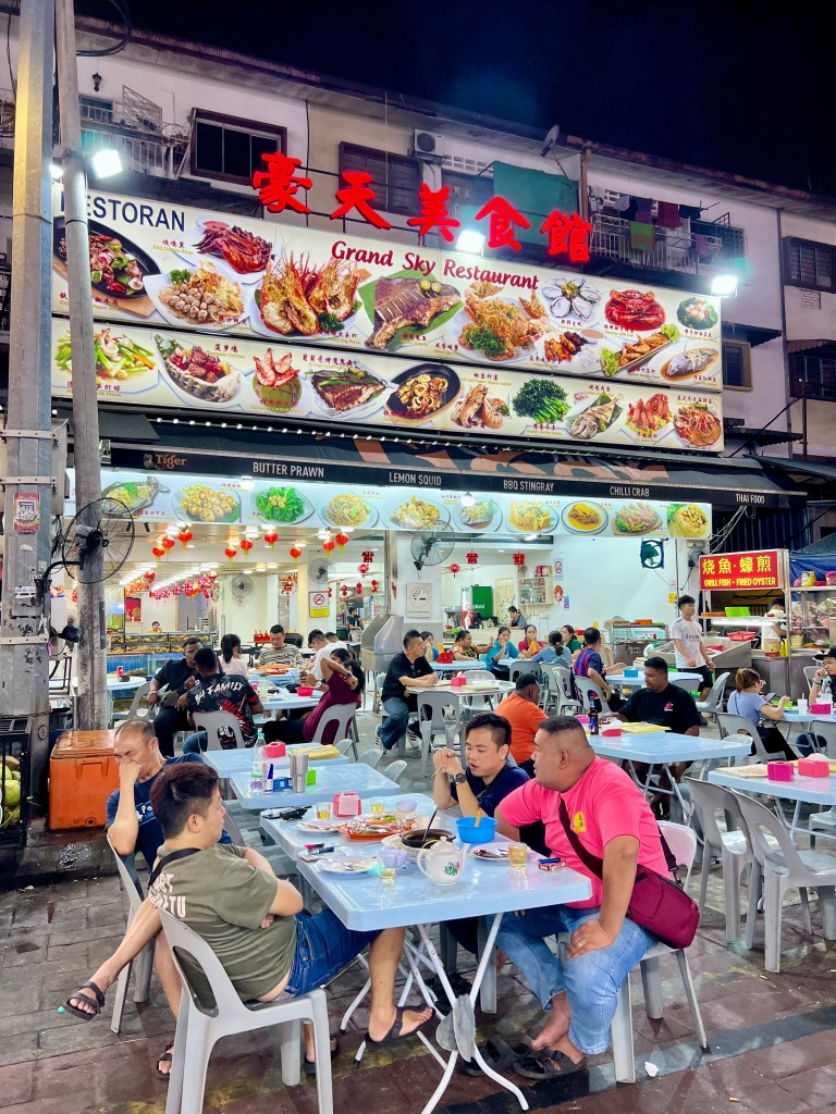 Attraverso la strada e vengo accolto da un ragazzo con un serpente gigante intorno al collo. Ottimo inizio. Più avanti, tra karaoke, ristoranti e mini-market, in un incrocio un gruppo suona musica dal vivo. C’è tanta gente. Mi fermo cinque minuti ad ascoltarli, poi proseguo verso Jalan Alor, una delle strade più iconiche di Kuala Lumpur. È un tripudio di luci, odori e sapori. Tanti ristoranti, bancarelle, cibo malese, cinese e thailandese. Cammino, mangio qualcosa al volo, e mi ritrovo in una strada piena di bar e locali.