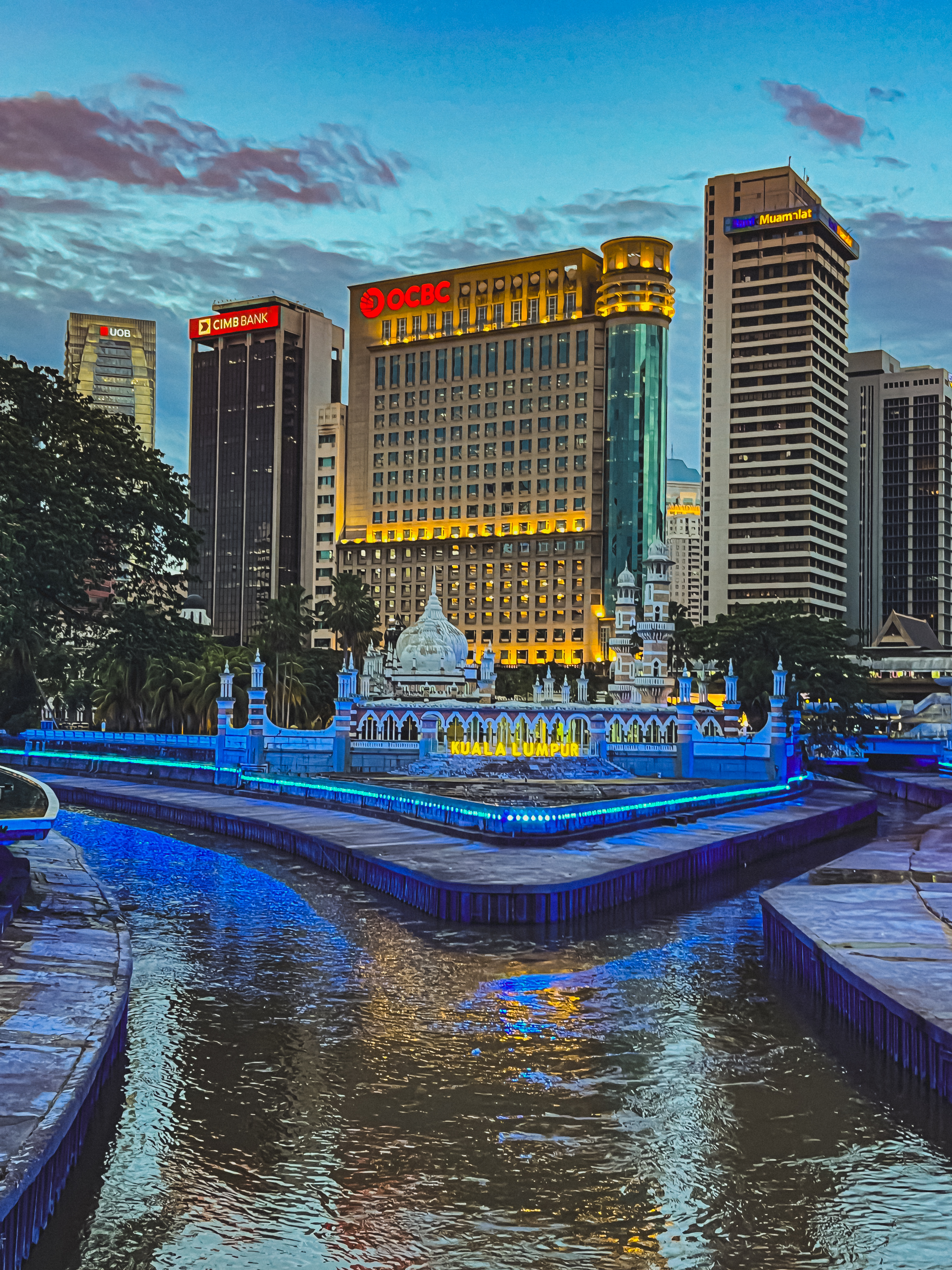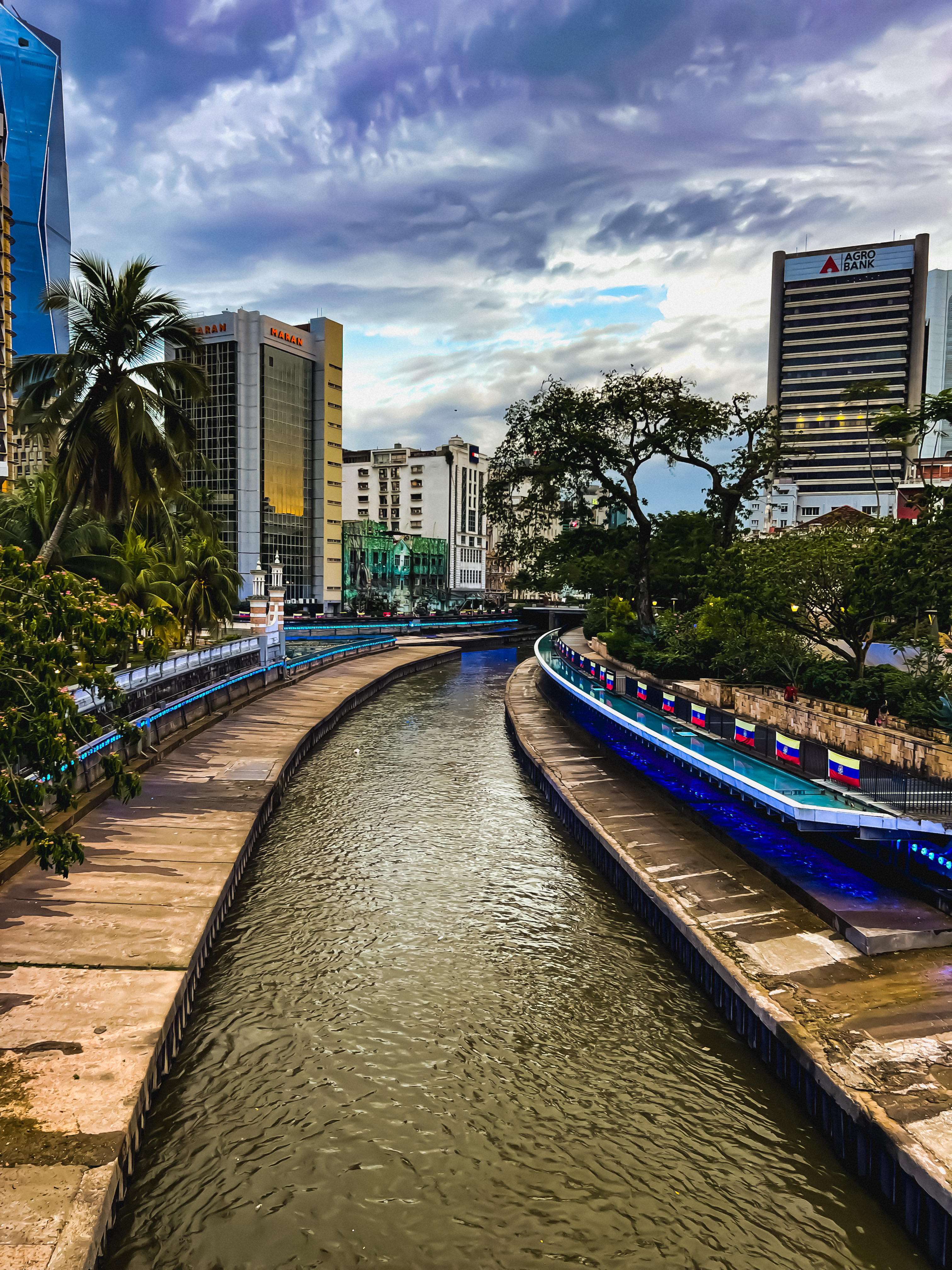 Mi alzo dal muretto e inizio a vagare senza meta. Voglio visitare Jalan Petaling, ma non ho fretta. Passo su un ponte che attraversa il River of Life: la vista è stupenda, e assisto incantato allo spettacolo di luci che illuminano il corso d’acqua nella notte, creando un’atmosfera quasi surreale. Resto lì per qualche minuto, rapito, poi riprendo il cammino.