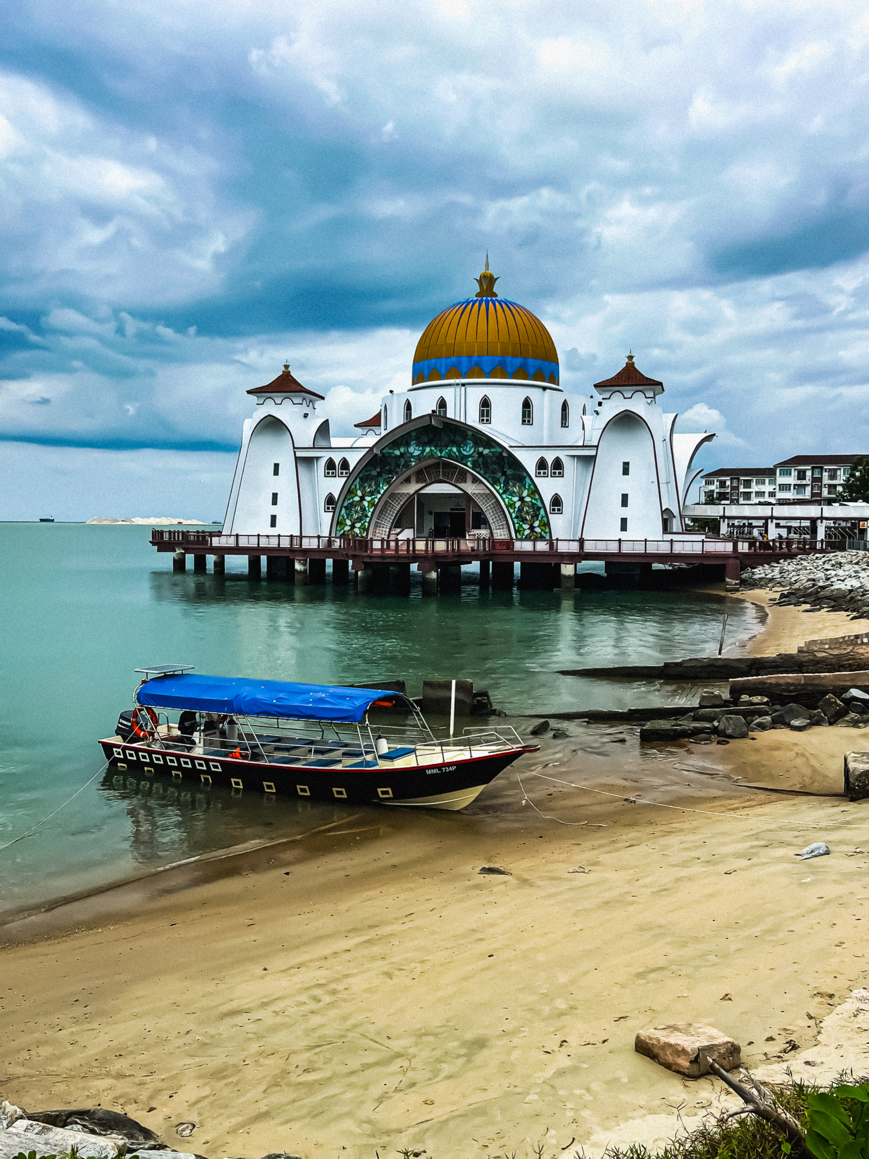 Scattiamo un selfie insieme, saluto ancora i suoi gattini curiosi, e vado in camera a prendere lo zaino. Prenoto un Grab direttamente dall’app (Basta aprire l’app, selezionare la destinazione e il prezzo appare subito. Il pagamento? Comodo e veloce, con la carta collegata al profilo): prima di lasciare Malacca voglio vedere una cosa, la Masjid Selat – la famosa moschea sul mare. Me l’ha consigliata proprio lui, e non posso ignorare questo consiglio.