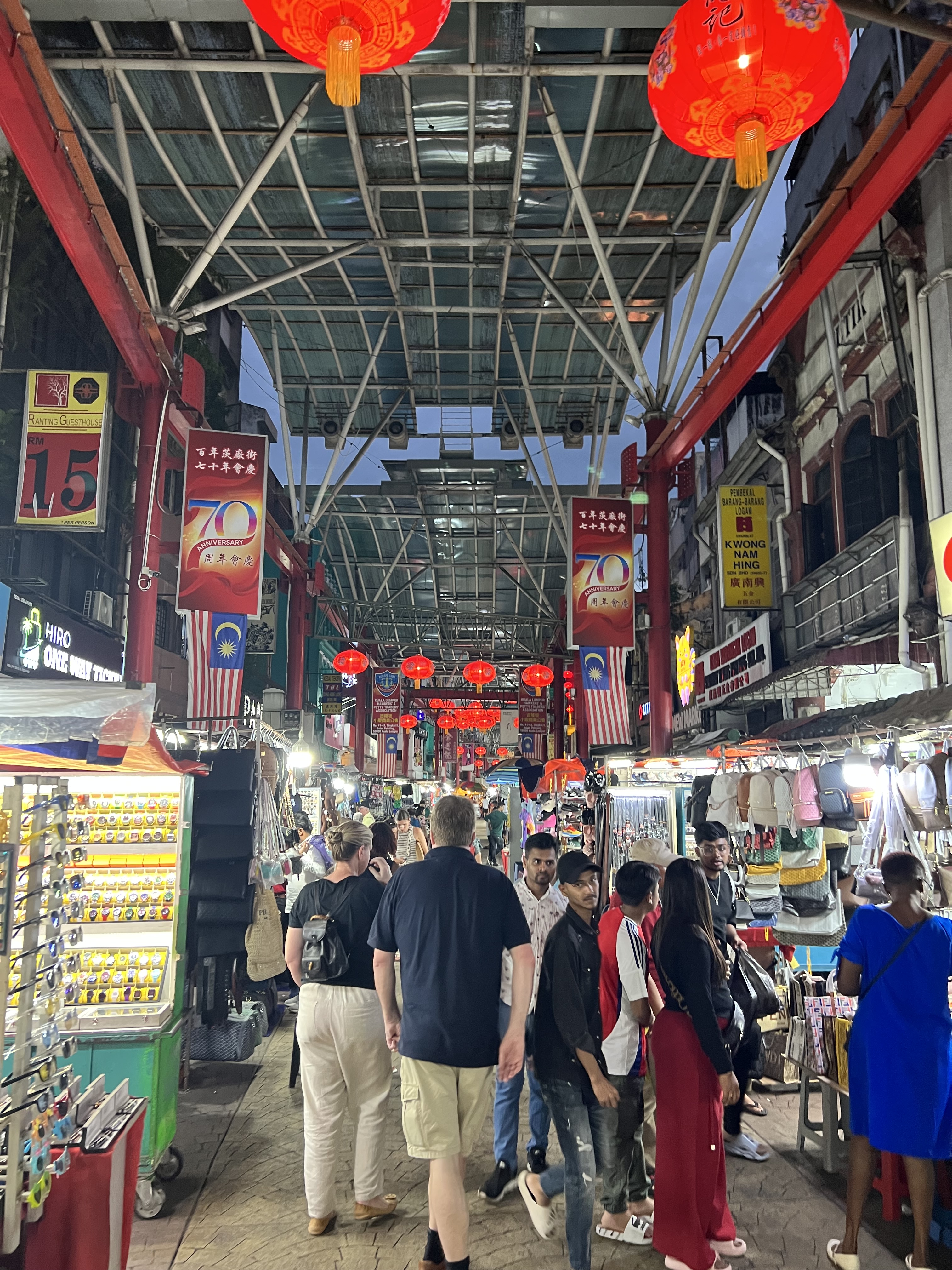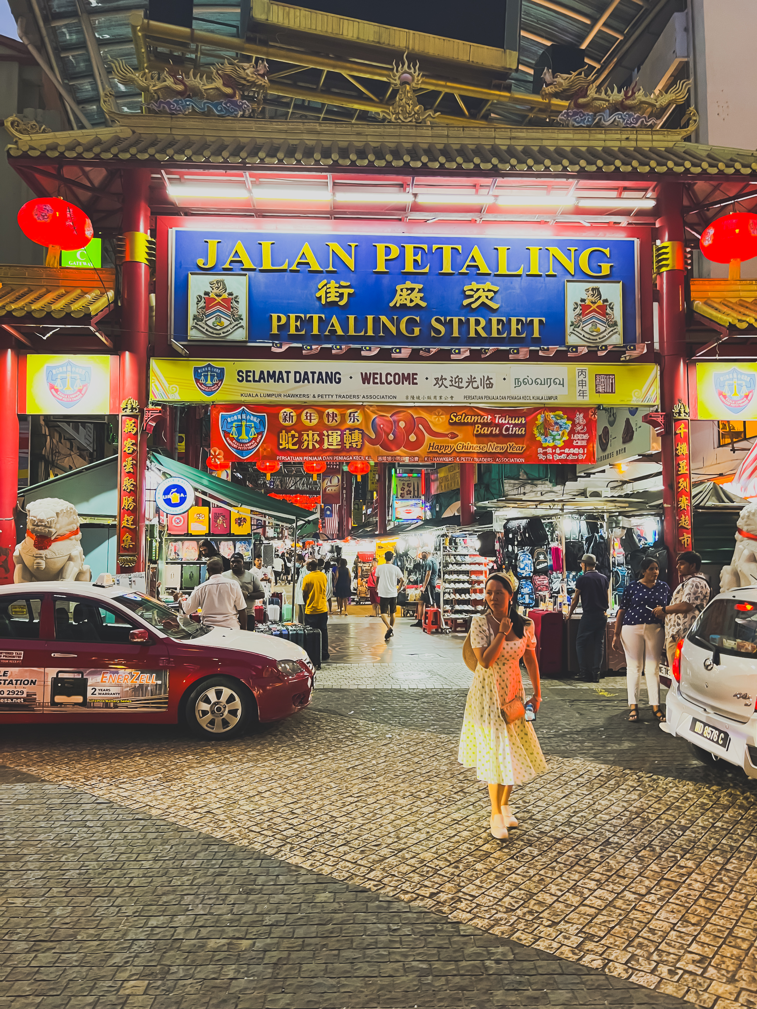 Finalmente arrivo a Jalan Petaling, una delle attrazioni turistiche più note della capitale. Situata nel cuore del quartiere cinese, questa via è un’esplosione di vita, colori e profumi. È diventata meta popolare per chi cerca autentici prodotti cinesi, street food e un’atmosfera unica. Conosciuto anche come Chinatown, il mercato è un fitto labirinto di bancarelle, negozi e ristoranti. Qui si può trovare di tutto: dai souvenir tradizionali ai vestiti contraffatti, dalle spezie ai gioielli, passando per prodotti elettronici e articoli per la casa.