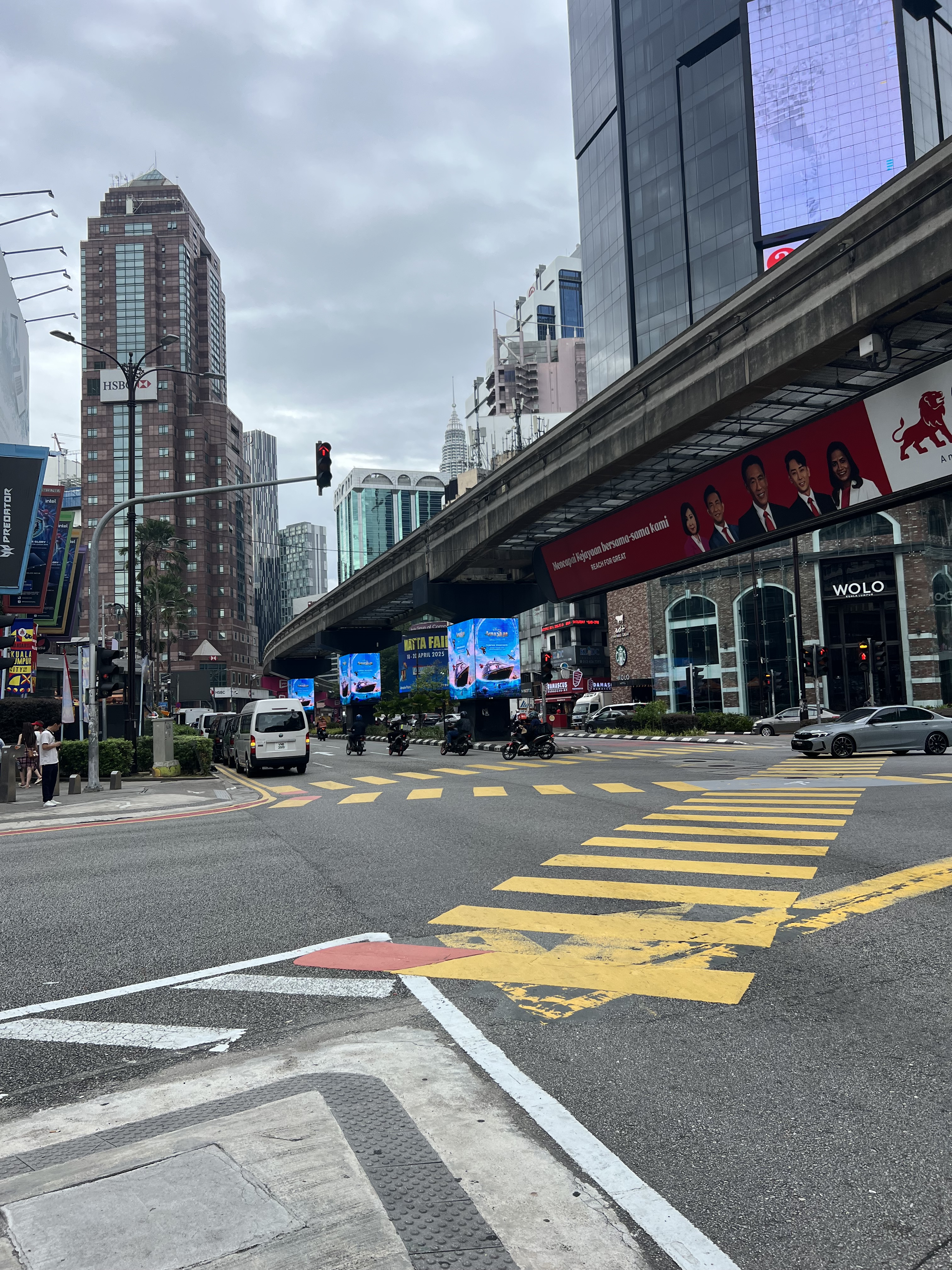 Dopo circa 40 minuti di metro, esco dalla stazione e mi ritrovo immerso in un’altra dimensione. Un salto netto dalla tranquillità di Malacca al caos organizzato di Kuala Lumpur. È tutto un fermento: clacson, gente ovunque, insegne luminose, incroci impossibili. Mi ricorda Bangkok, dove ero già stato anni fa: quel mix di disordine e meraviglia che solo le grandi metropoli asiatiche sanno regalare.