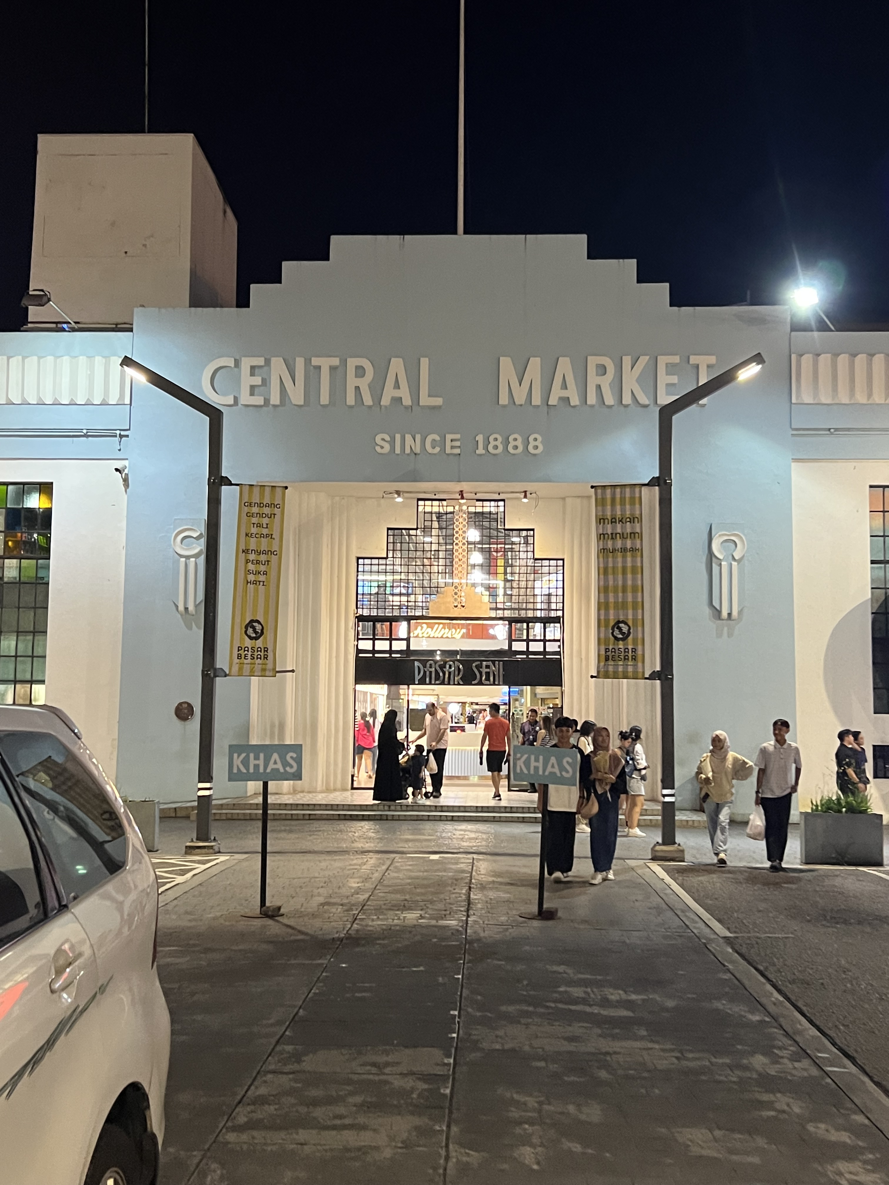 Fondato nel 1888 dagli inglesi, l’attuale edificio in stile Art Déco è stato completato nel 1937, diventando una parte fondamentale della vita cittadina grazie alla sua posizione vicino al terminal degli autobus di Klang. Entro e faccio un giro: è abbastanza moderno e i negozi stanno iniziando a chiudere. Ci resto una quindicina di minuti, poi esco e mi dirigo verso la vicina stazione Pasar Seni.