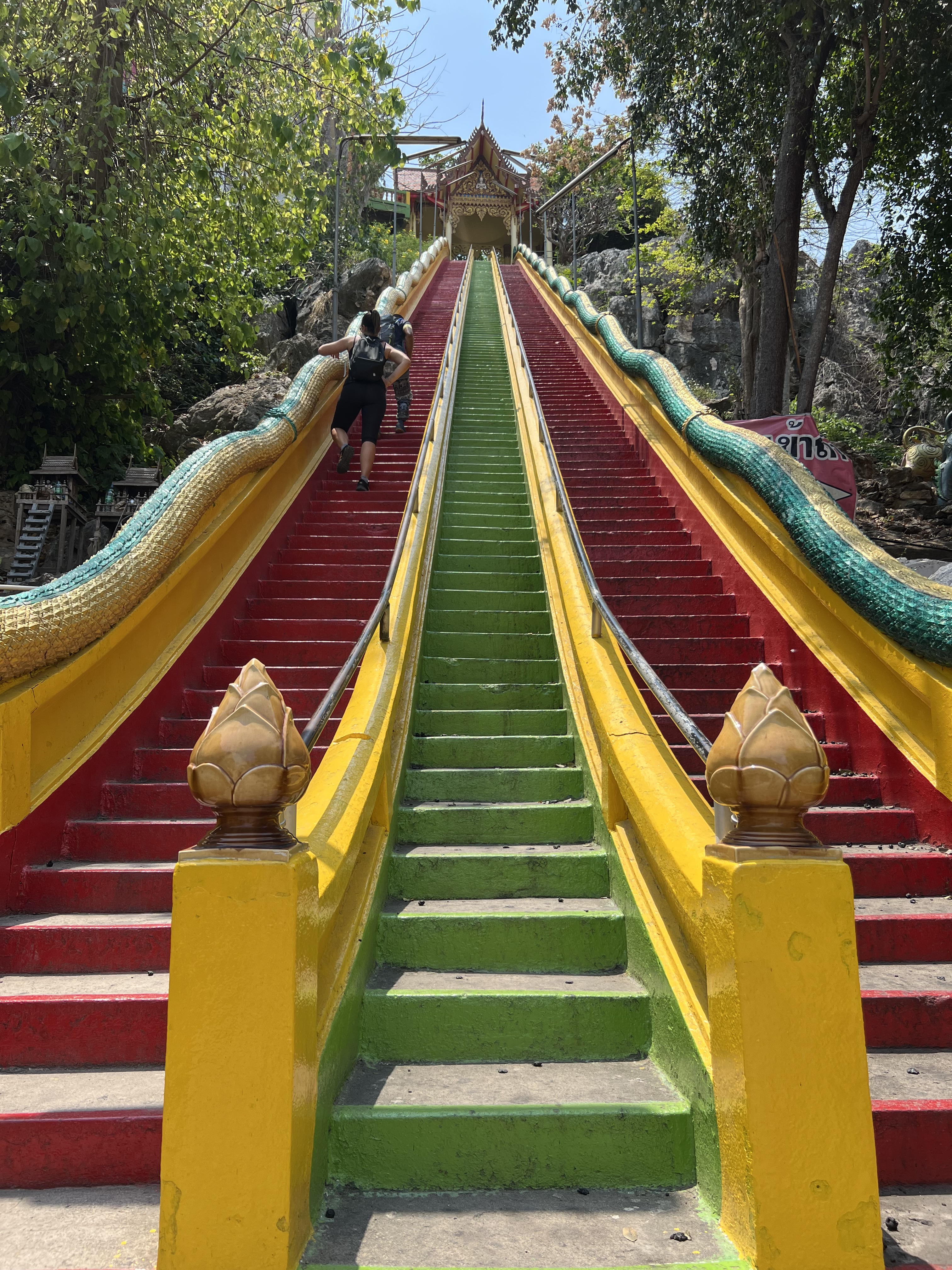 Dopo una decina di minuti arriviamo alla collina dei templi. Il piazzale del parcheggio è immenso e vuoto. Di fronte a me, la scalinata con i suoi 157 gradini. La funivia è in manutenzione: mi tocca salire a piedi. Sotto il sole cocente, ogni scalino sembra diventare doppio. Con un respiro profondo dopo l’altro, affronto la salita.