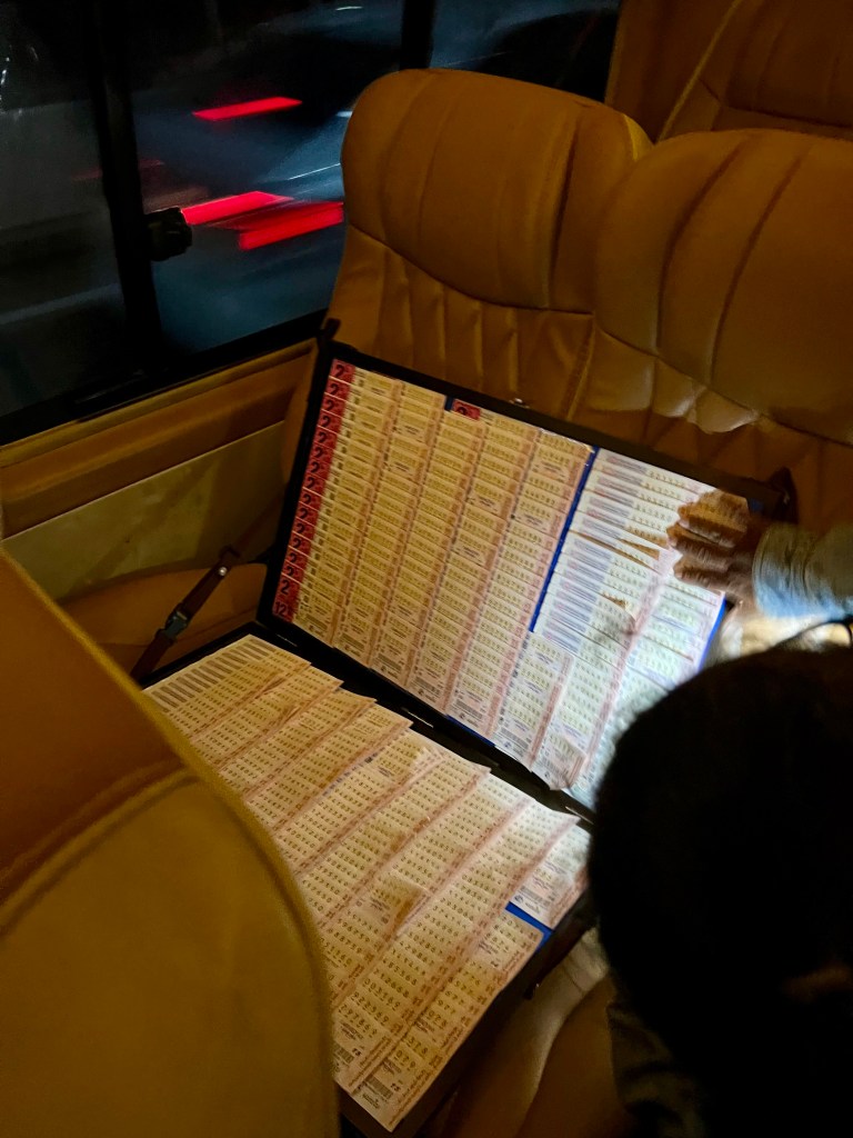 Si accomoda accanto a un sedile vuoto e la apre: dentro ci sono dei biglietti numerati. Con curiosità le chiedo di cosa si tratti. Lei mi spiega che sono biglietti della lotteria che vende. Li avevo già visti a Kanchanaburi, ma non avevo capito cosa fossero. Mi racconta che ogni giorno si sposta da Ayutthaya a Sena per cercare di venderli. Non parla benissimo inglese, ma è curiosa di sapere da dove vengo e cosa voglio visitare. Così, con l’aiuto del traduttore sul telefono, facciamo una piacevole chiacchierata fino a destinazione.