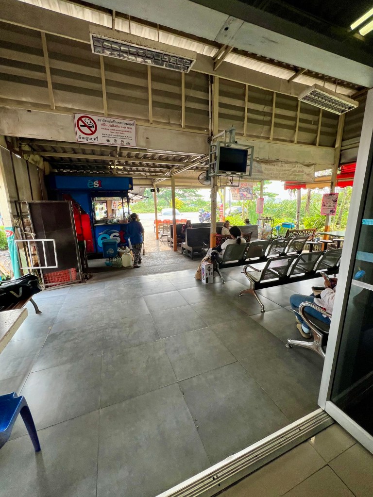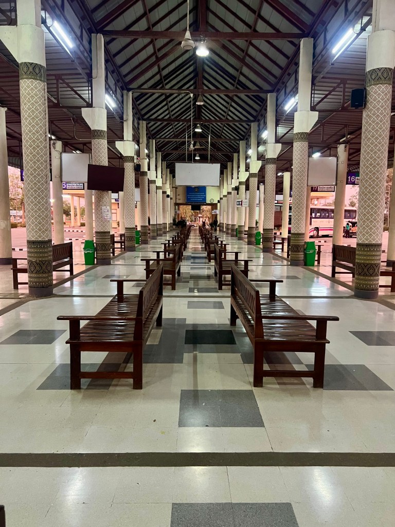 Dopo una ventina di minuti tra traffico e stradoni enormi, arrivo alla stazione dei bus. Recupero lo zaino, saluto il driver e mi dirigo dentro per fare un piccolo “check-in”, giusto per segnalare la mia presenza. L’autobus arriva con una mezz’ora di ritardo, probabilmente per via del traffico da Bangkok.