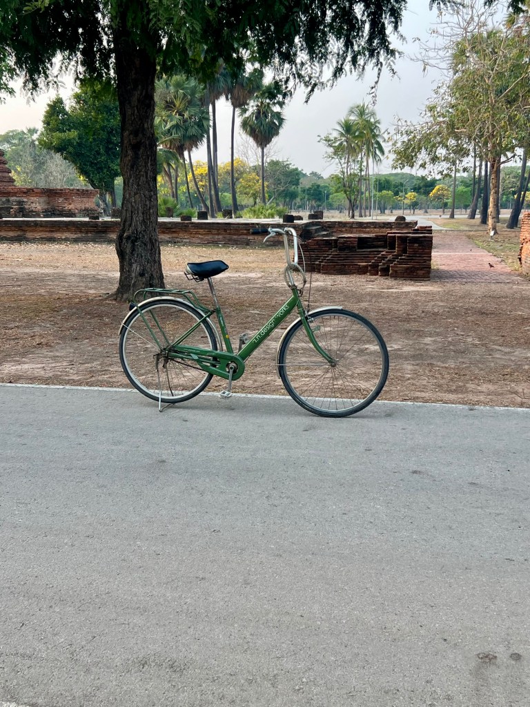 Dopo circa 15 minuti di corsa arriviamo davanti a un negozio di noleggio biciclette: il modo migliore per visitare un parco così grande. Affitto una bici per tre ore a 30 bath (1 euro). Lascio lo zaino al tuk tuk, pago il biglietto d’ingresso (100 bath) ed entro.
