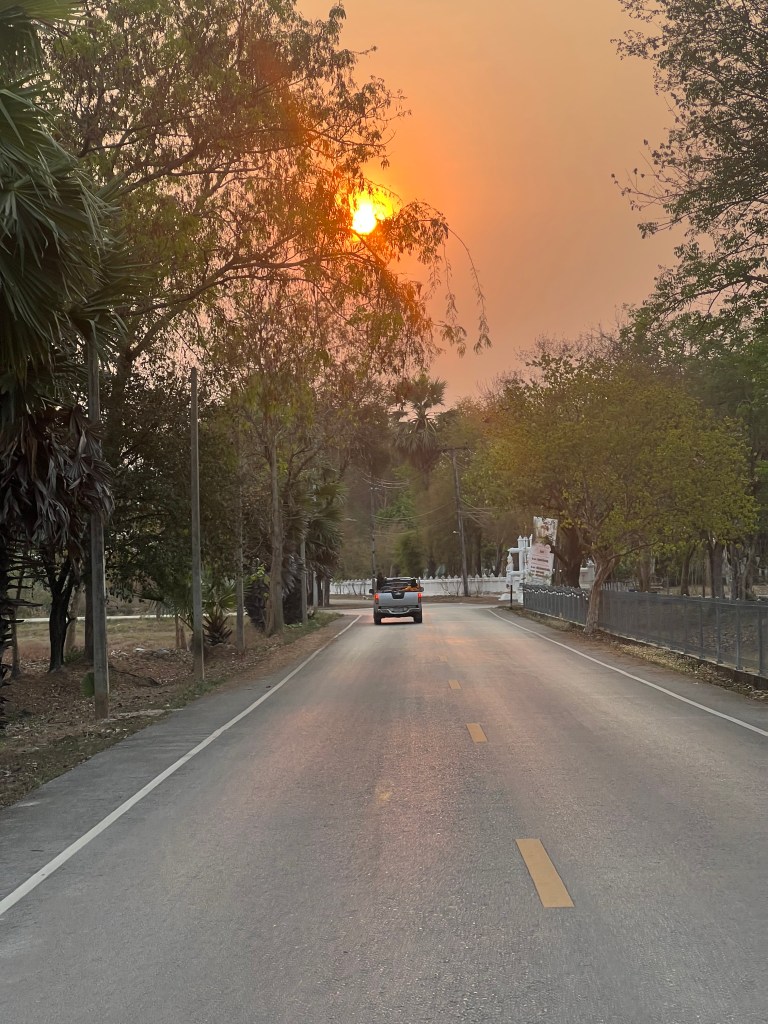 Esco intorno alle 08.30 per fare colazione al bar del giorno prima, dove mi ero trovato bene: i soliti sandwich e via. Rientro in guesthouse, chiudo lo zaino e proprio in quel momento la proprietaria mi viene a chiamare: c’è un collega di Mr. Manop che mi aspetta per portarmi alla stazione dei bus. Senza alcun contatto telefonico, solo con la parola datami due giorni prima, ottengo il passaggio pattuito, incluso nel prezzo. Ancora una volta il popolo thailandese mi stupisce.