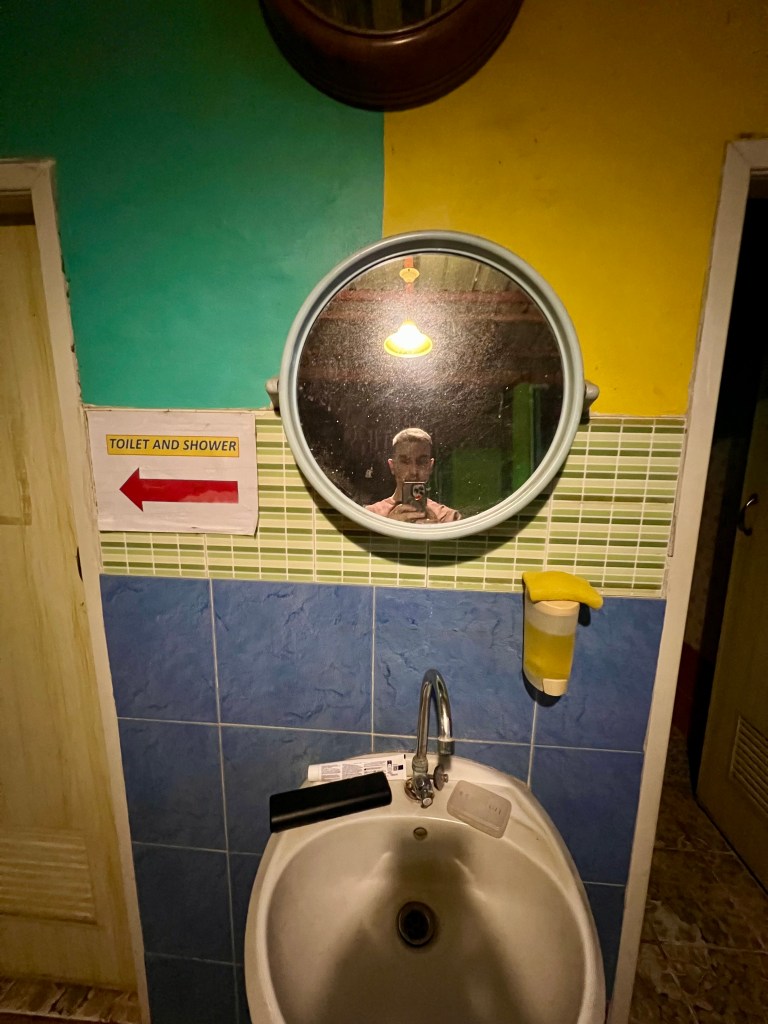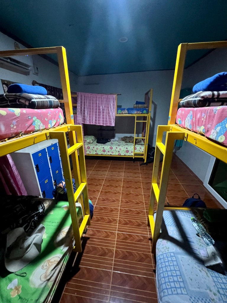 Prendo lo zaino e mi dirigo verso l’ostello. La struttura è particolare, una corte aperta con mini appartamenti sparsi lungo il perimetro. Tutto è all’aperto. Al bancone, sistemato direttamente sulla strada, faccio il check-in: una ragazza mi consegna la chiave e mi indica la mia camera, avvertendomi che i bagni e le docce sono in piccole strutture accanto.