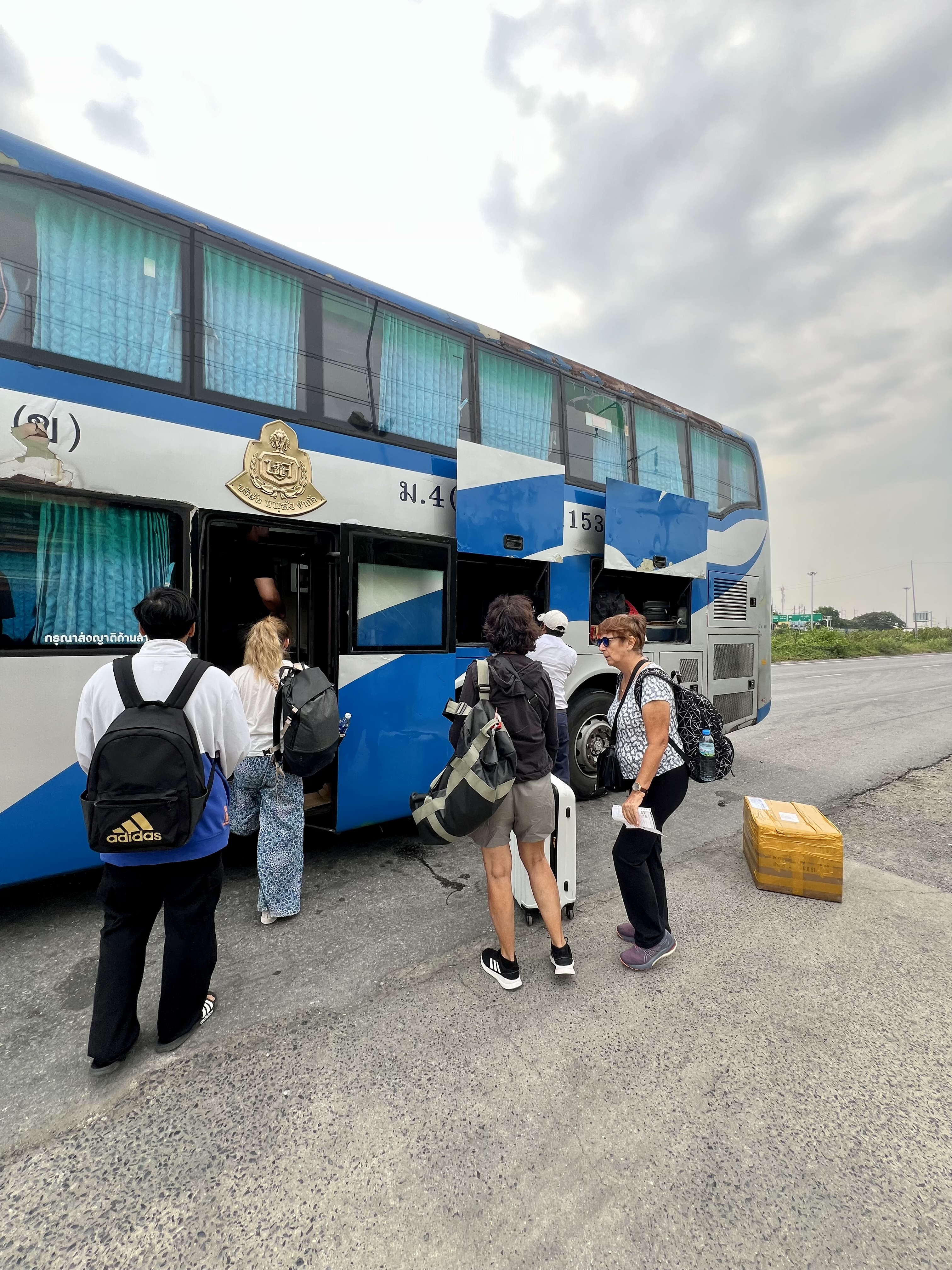Dopo una ventina di minuti tra traffico e stradoni enormi, arrivo alla stazione dei bus. Recupero lo zaino, saluto il driver e mi dirigo dentro per fare un piccolo “check-in”, giusto per segnalare la mia presenza. L’autobus arriva con una mezz’ora di ritardo, probabilmente per via del traffico da Bangkok.