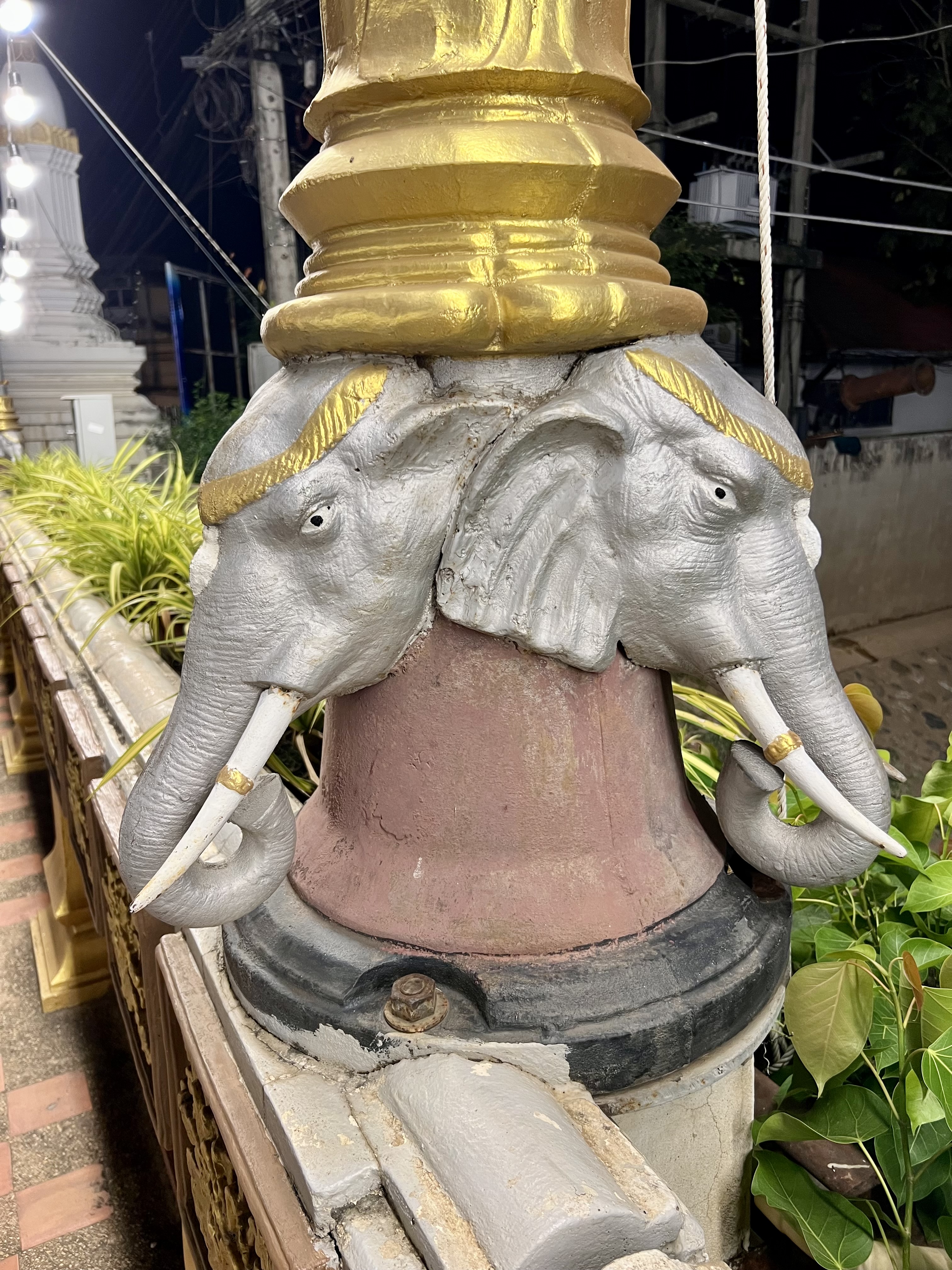 Arrivo al ponte e mi affaccio: sotto scorre il Mae Nam Yom, il fiume che taglia la città. I pali della luce che costeggiano il ponte sono decorati da teste di elefante. Resto lì qualche minuto, respirando quell’atmosfera sospesa, poi torno indietro.
