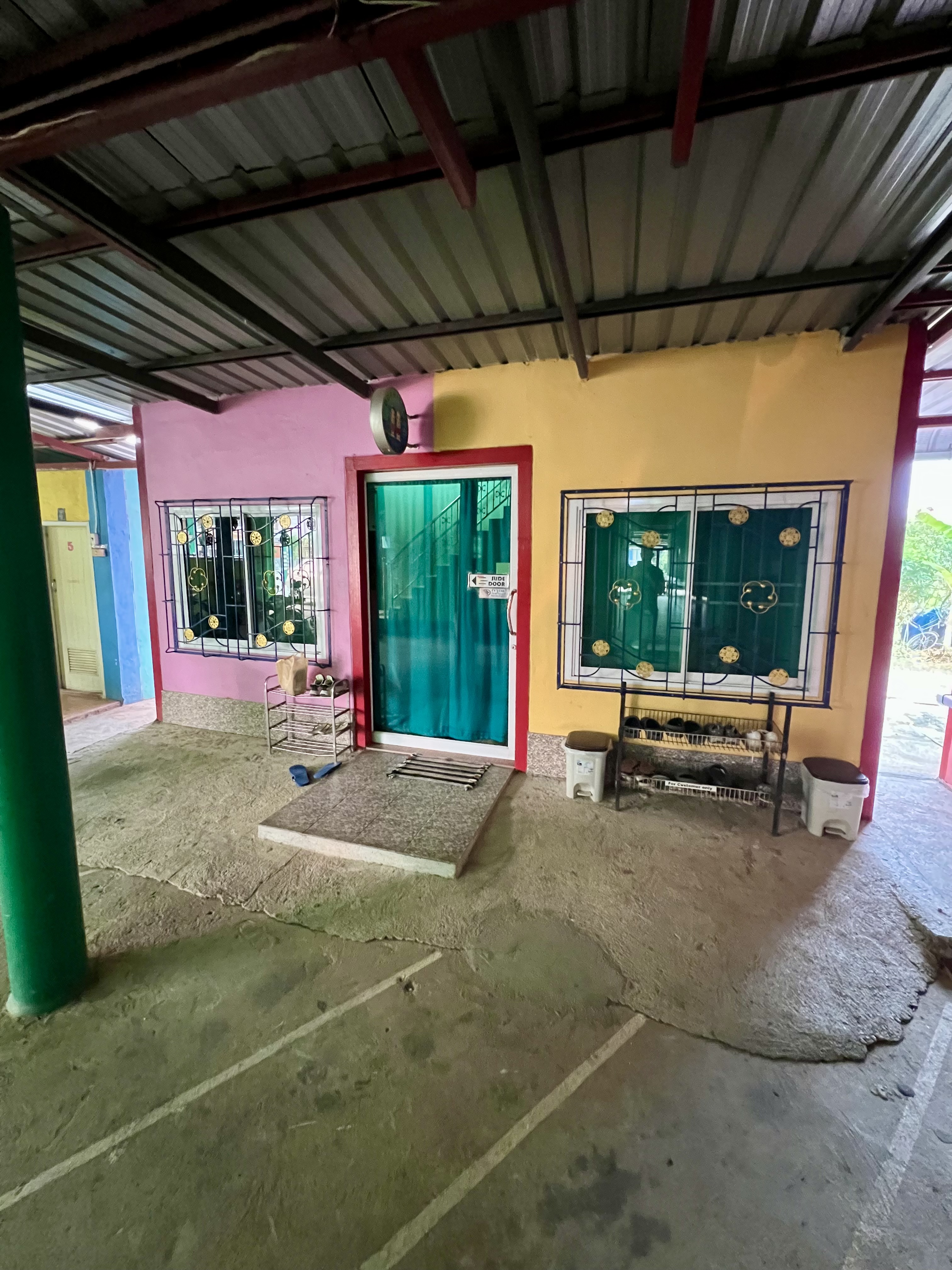 Prendo lo zaino e mi dirigo verso l’ostello. La struttura è particolare, una corte aperta con mini appartamenti sparsi lungo il perimetro. Tutto è all’aperto. Al bancone, sistemato direttamente sulla strada, faccio il check-in: una ragazza mi consegna la chiave e mi indica la mia camera, avvertendomi che i bagni e le docce sono in piccole strutture accanto.