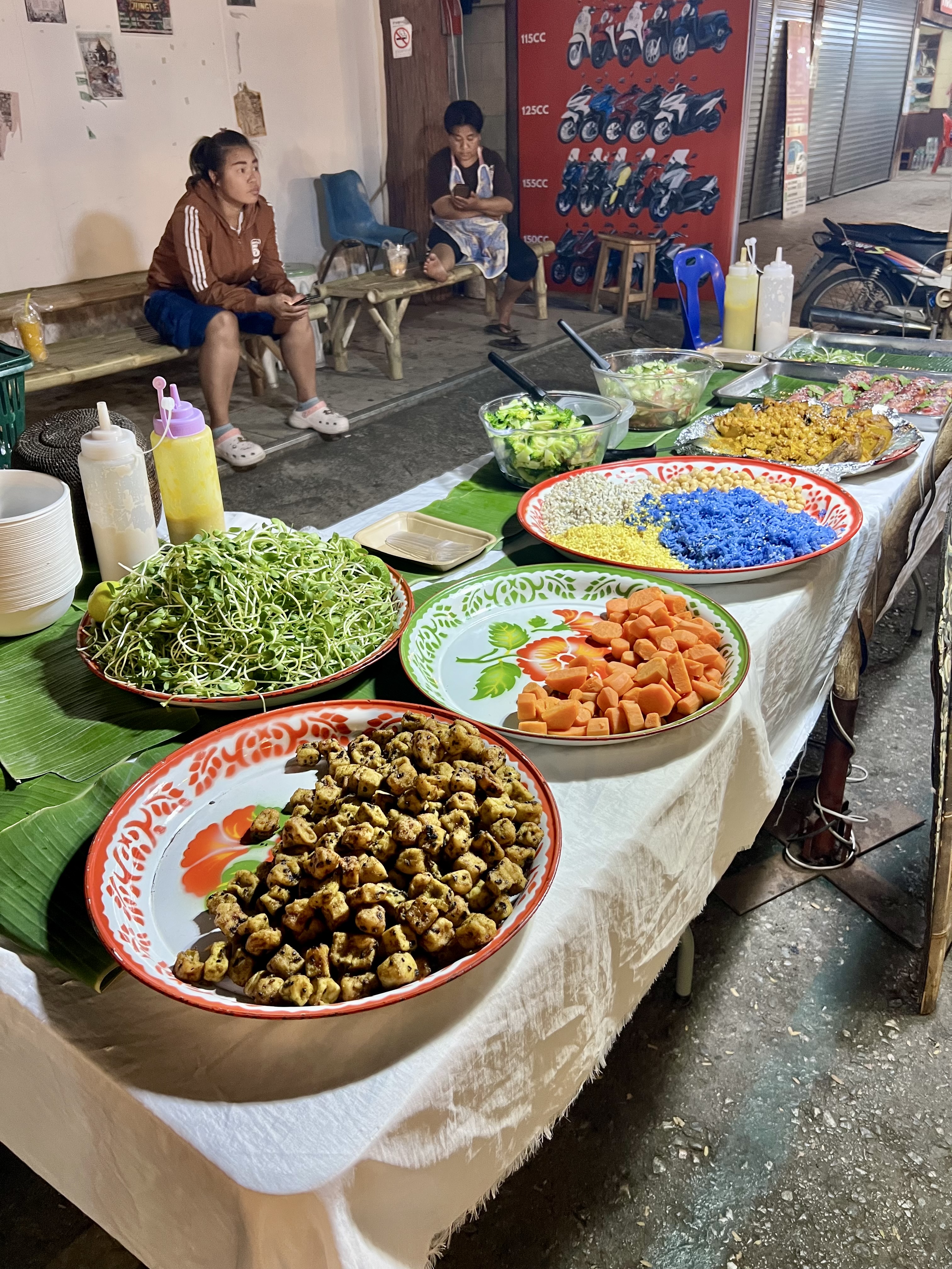 Tornando verso il centro, noto che Pai è ormai piena di gente, per lo più turisti americani e inglesi. I bar e i ristoranti sono affollati, la musica risuona ovunque, ma non c’è confusione. C’è una vivacità rilassata, un’armonia tra festa e tranquillità che sembra il tratto distintivo di questo luogo.