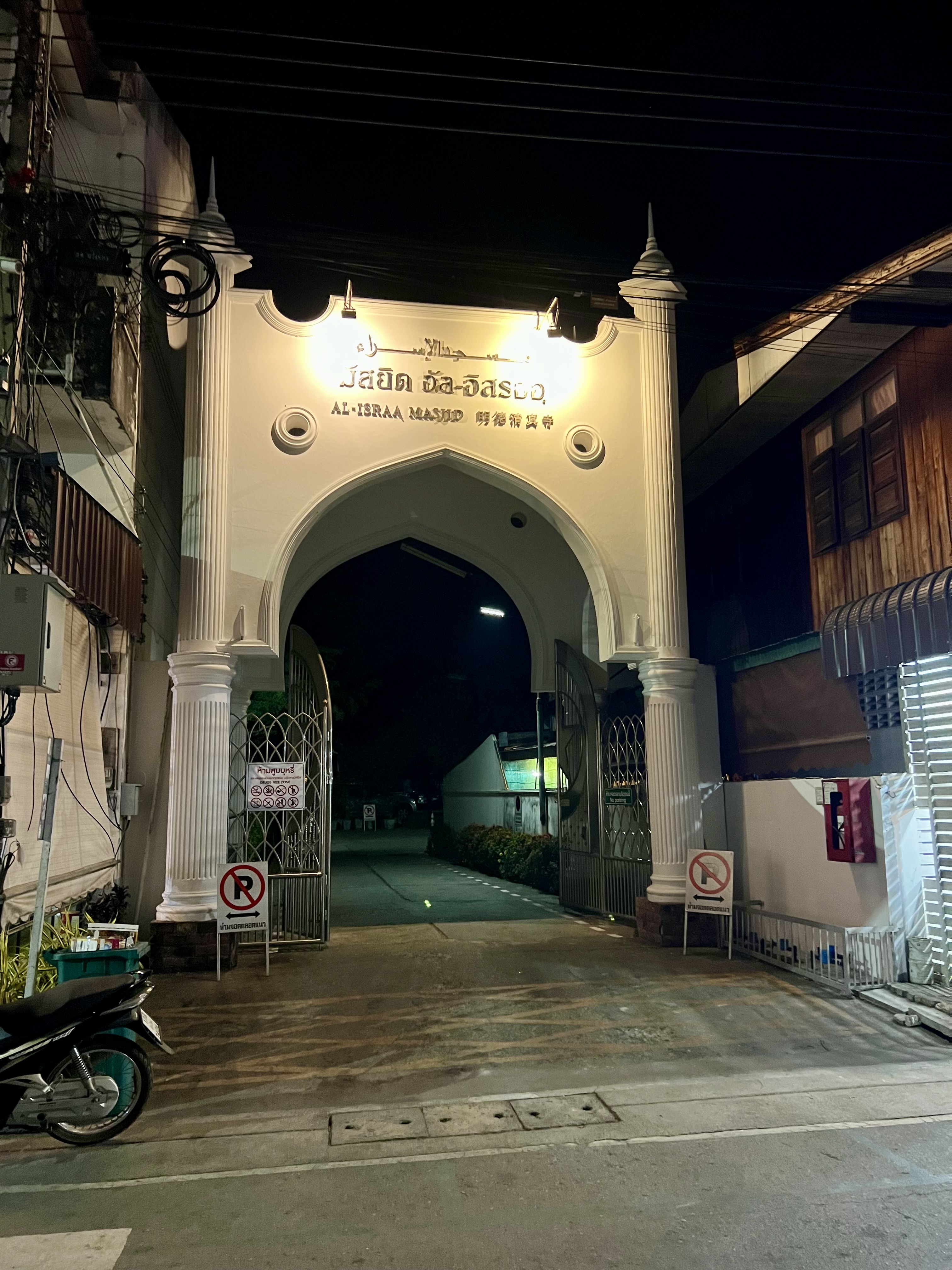 Continuo a camminare tra luci, profumi e suoni, lasciandomi avvolgere dall’atmosfera unica della notte di Pai. Vagando senza meta, mi ritrovo davanti a una moschea, la Al-Israa Masjid. Rimango sorpreso: una moschea nel cuore della Thailandia del nord, in un paese a maggioranza buddhista.