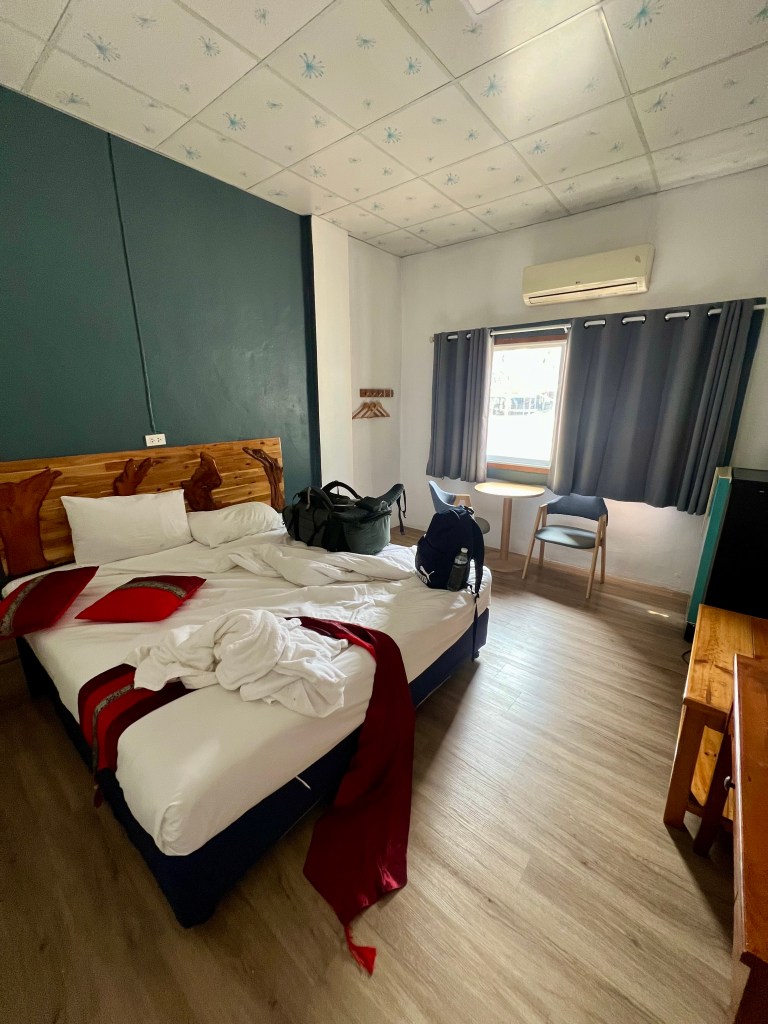 Ripenso alla giornata: il viaggio in minivan tra le 762 curve da Chiang Mai a Pai, l’esplorazione del villaggio, la fatica in bici, la fuga dagli scarafaggi, i cani, e infine l’incontro che ha cambiato tutto.