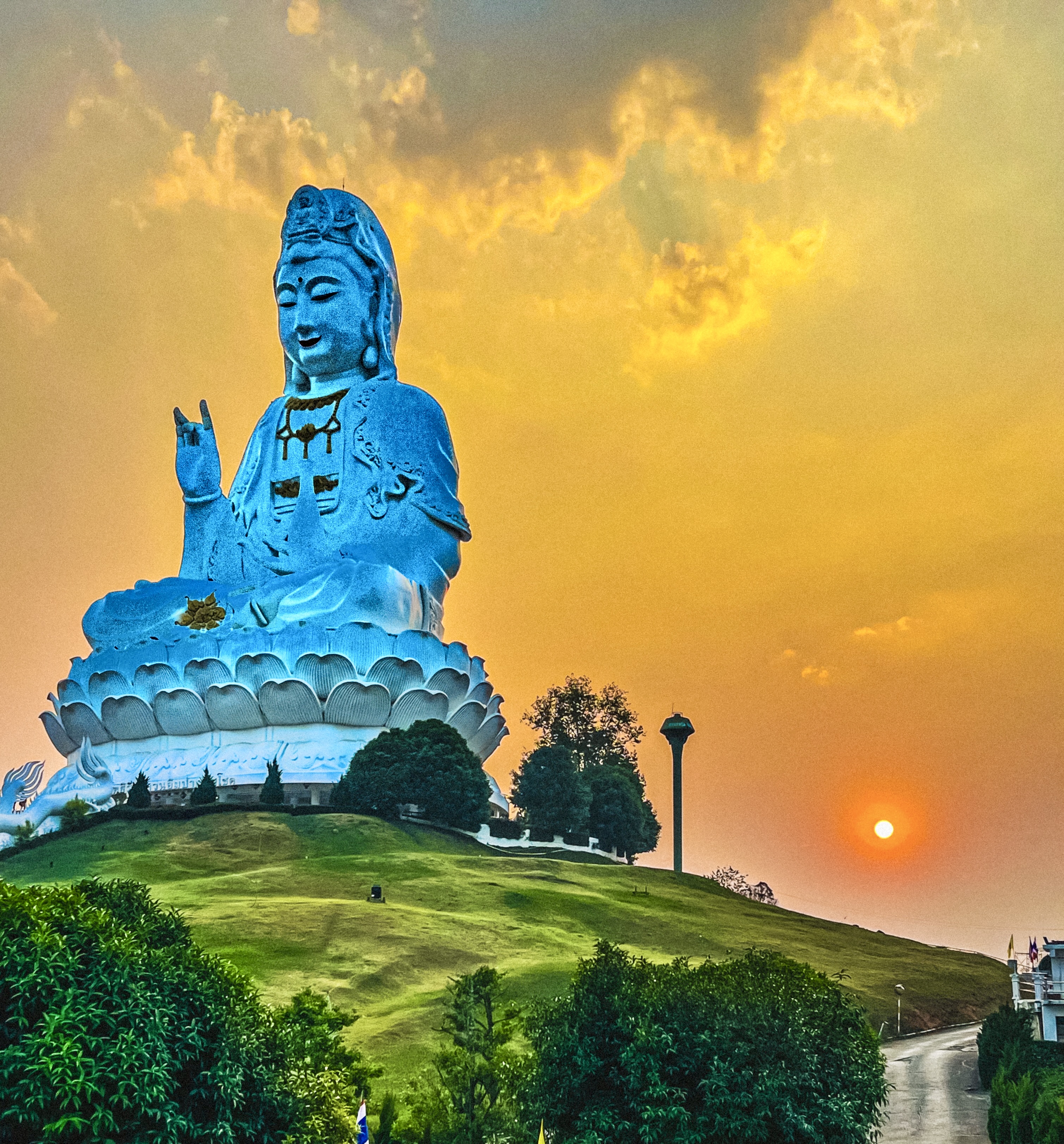 Un venticello quasi fresco mi asciuga il sudore. Il sole scende lentamente alle spalle di Guan Yin. Dagli altoparlanti si diffonde un mantra buddista cantato da bambini. In quell’istante mi sento vivo. E profondamente grato. Le emozioni mi attraversano senza chiedere permesso e mi abbandono a un pianto liberatorio, come se avessi aperto una porta dentro di me, una porta rimasta chiusa troppo a lungo.