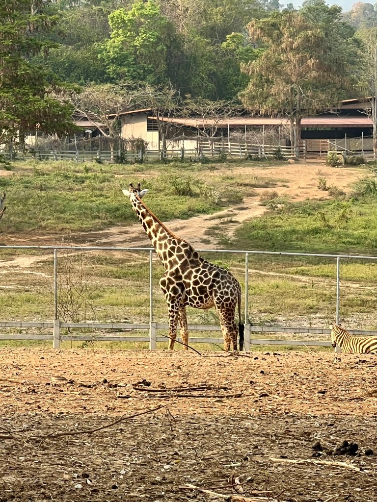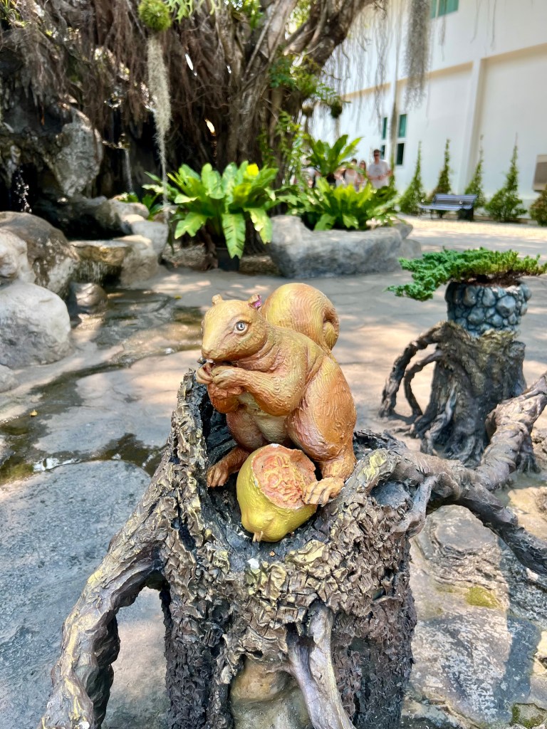 Nella mitologia thailandese e del Sud-Est asiatico, il Singha — il leone — rappresenta forza, coraggio e leadership. È anche il simbolo della celebre birra Singha, prodotta dall’azienda proprietaria del parco, che un tempo era una grande fattoria agricola. Mi scatto qualche foto accanto alla statua, aiutato da una famiglia indiana, poi mi dirigo al botteghino. 150 baht, poco più di quattro euro, per il giro in trenino.