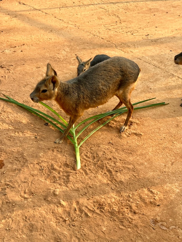Il trenino riparte e ci conduce al mini zoo. Zebre, pappagalli dai colori accesi, giraffe, struzzi, pavoni, caprette, conigli, tartarughe giganti e lepri della Patagonia. È possibile dare da mangiare agli animali con il cibo venduto sul posto.