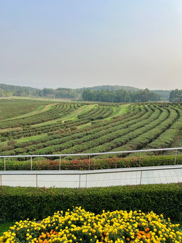 Anche qui il tempo scorre veloce. Risaliamo sul trenino e raggiungiamo una collinetta panoramica, da cui si aprono davanti a noi le piantagioni di tè che si perdono a vista d’occhio. Una vista ampia, ordinata, che trasmette pace. Ci fermiamo una ventina di minuti; c’è anche un bar. Poi il trenino ci riaccompagna lentamente all’ingresso del parco, chiudendo il cerchio di questo pomeriggio sospeso.